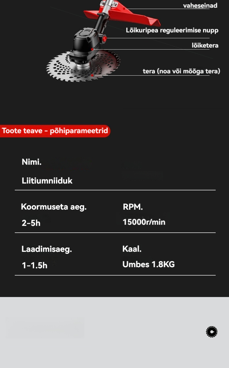 Suure võimsusega liitiumniiduk, kodune umbrohutõrje